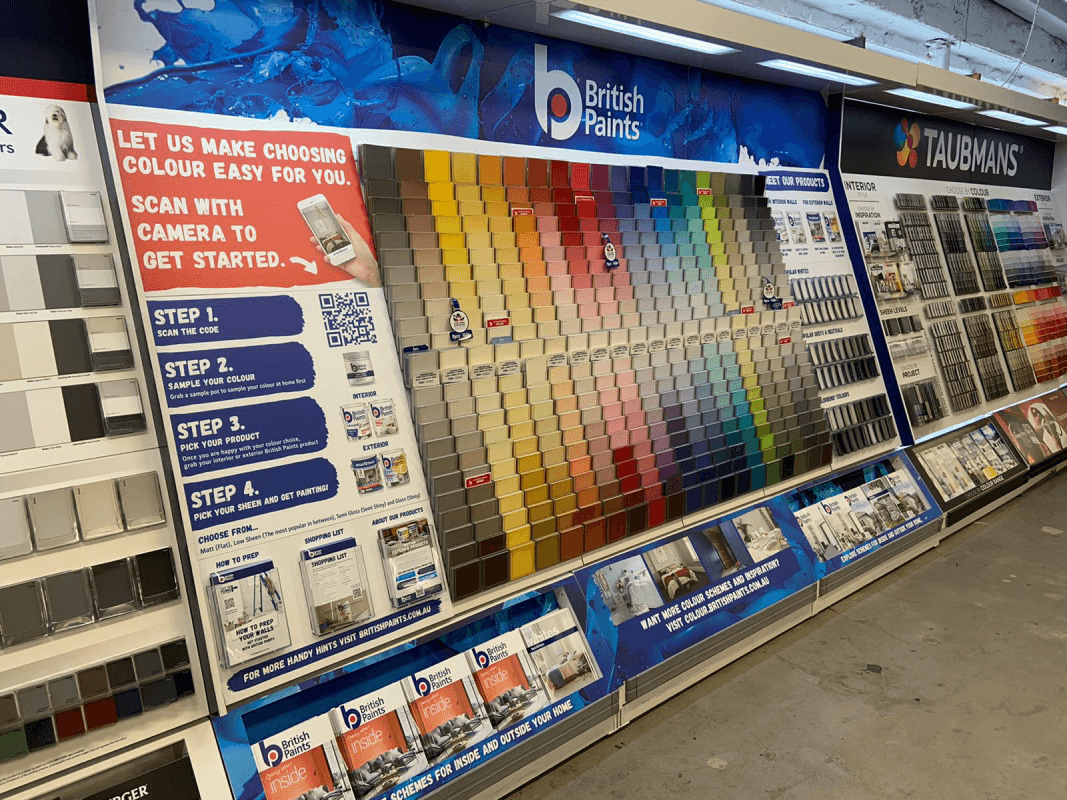 Working in collaboration with DuluxGroup, Fusion delivered the British Paints colour wall across Bunnings stores nationwide.
